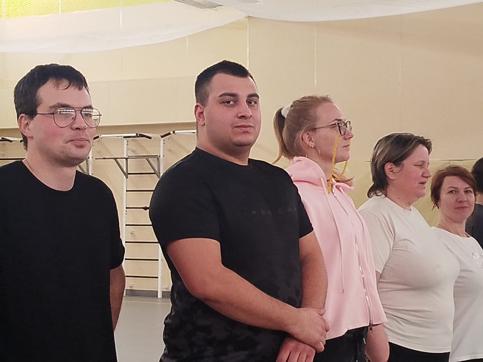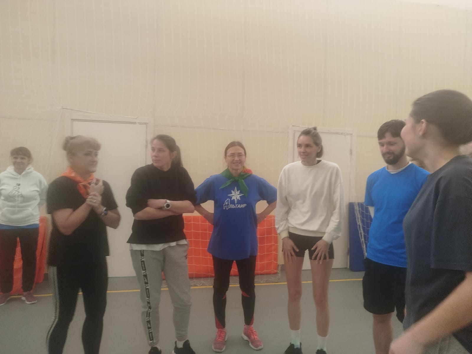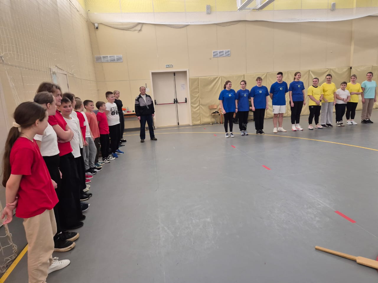 Итак, шесть команд принимают участие. Сначала разминка, пробная игра, затем построение.