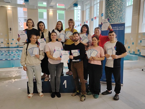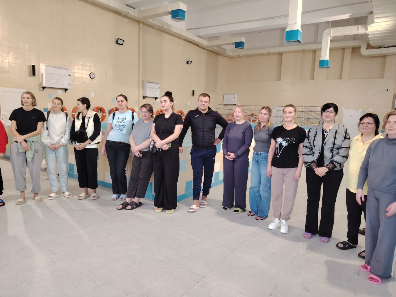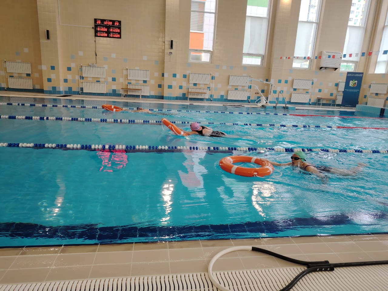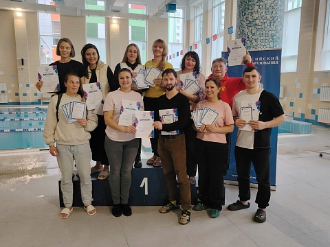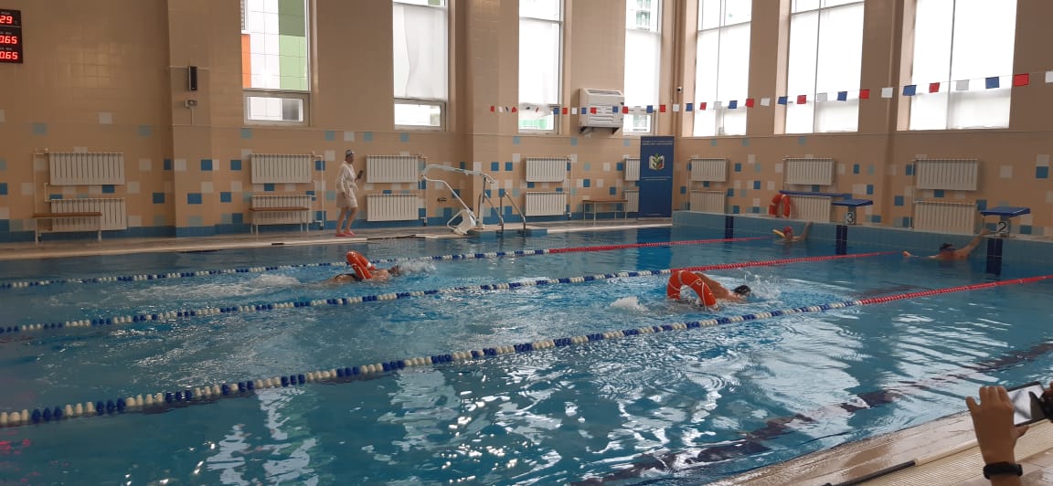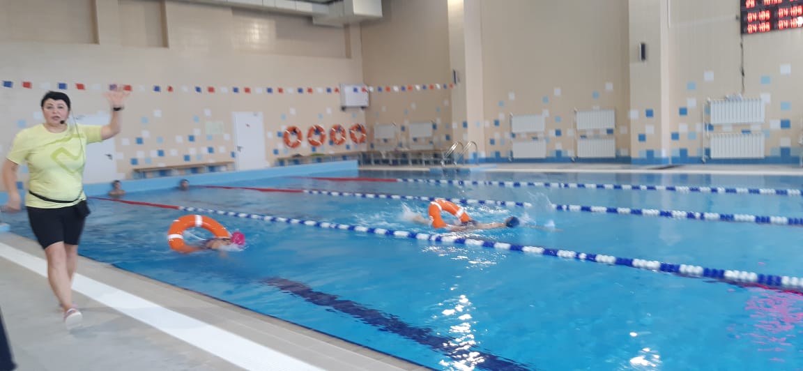 Ольга Николаевна Корчагина со своим воспитанниками провела мастер-класс по плаванию, продемонстрировала прохождение эстафет. Каждая член команды принял участие в личном первенстве. Шла серьезная борьба в командной эстафете 4 х 25 метров вольным стилем и командной эстафете с предметами 4 х 25 метров.