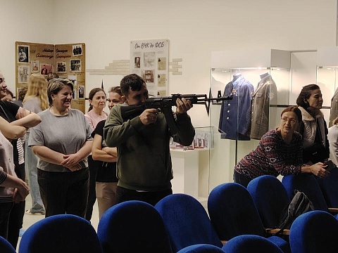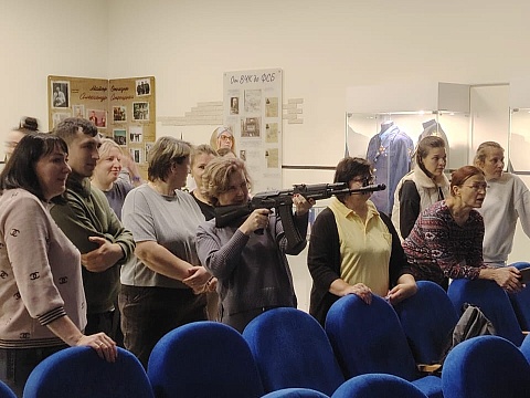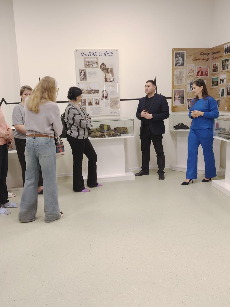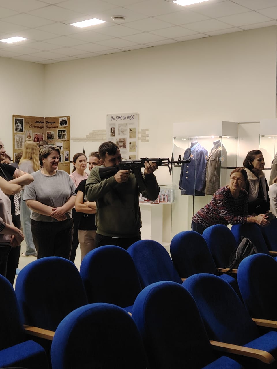 Открыли мероприятие председатель первичной профсоюзной организации Елена Александровна Подгузова и член профсоюза Ирина Владимировна Мартякова. Ирина Владимировна провела интересную экскурсию по школе, отвела в музей, где рассказа о герое Александре Атрощанка. Каждый участник мог попробовать свои способности в электронном тире, и справедливости ради надо отметить, что результаты по стрельбе отличные.
