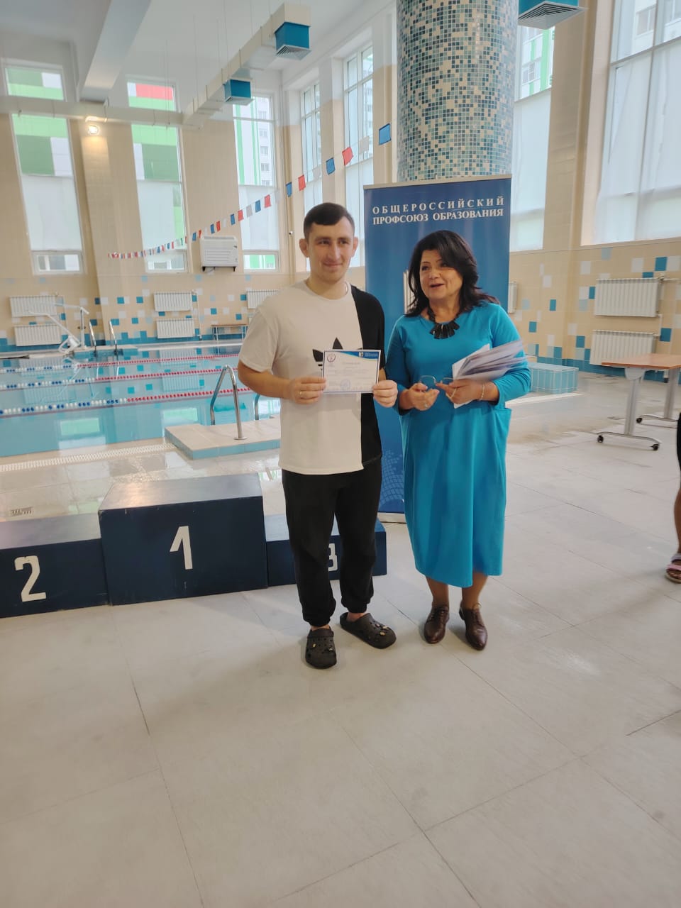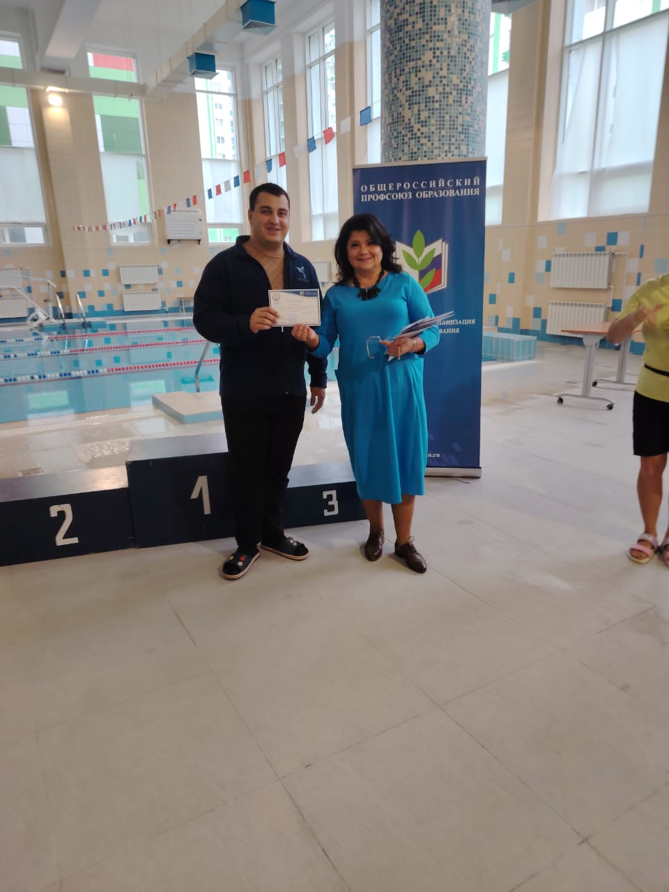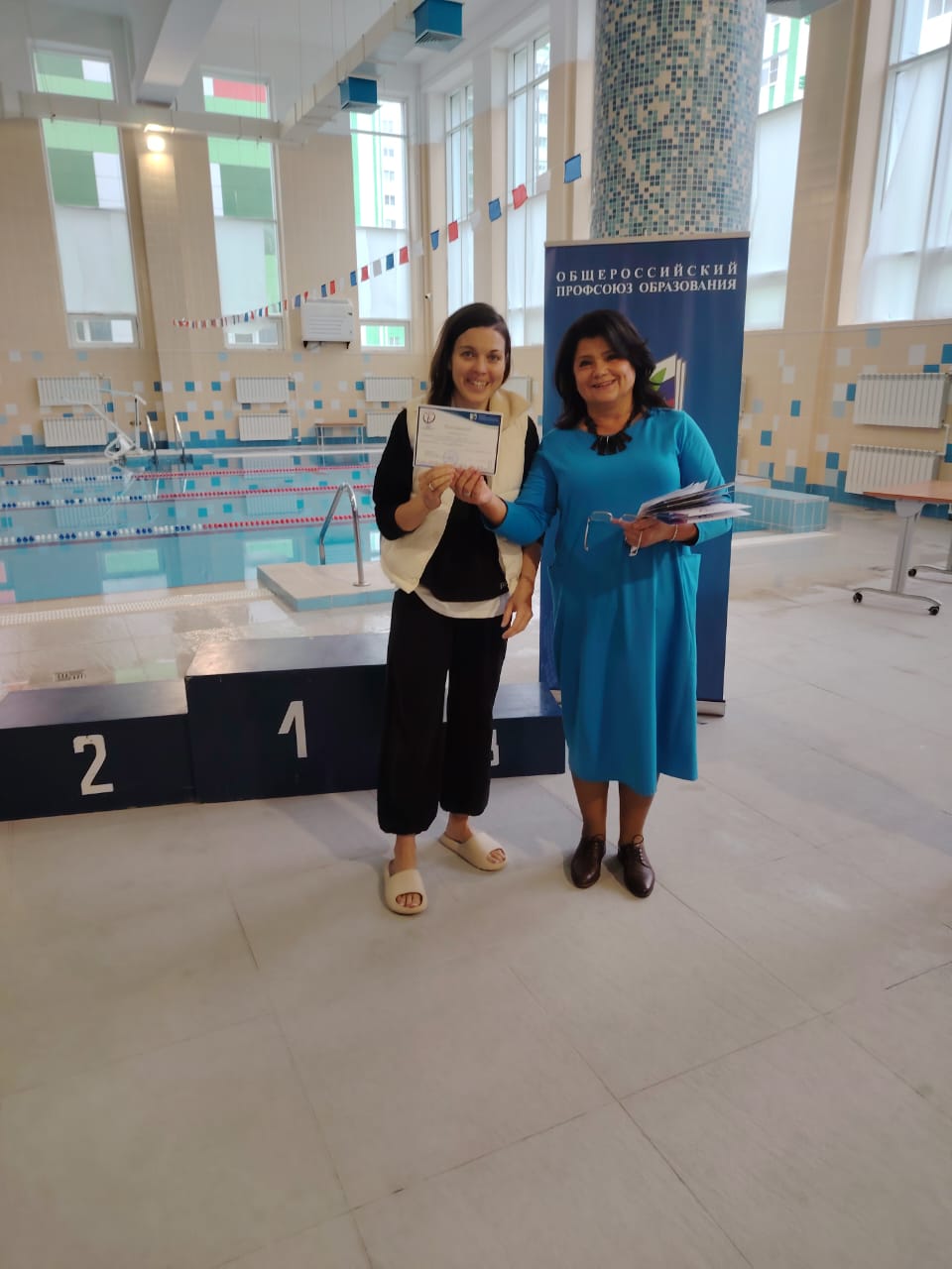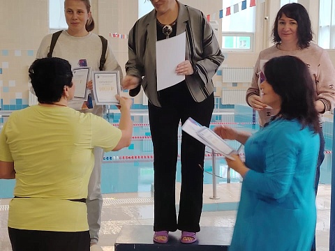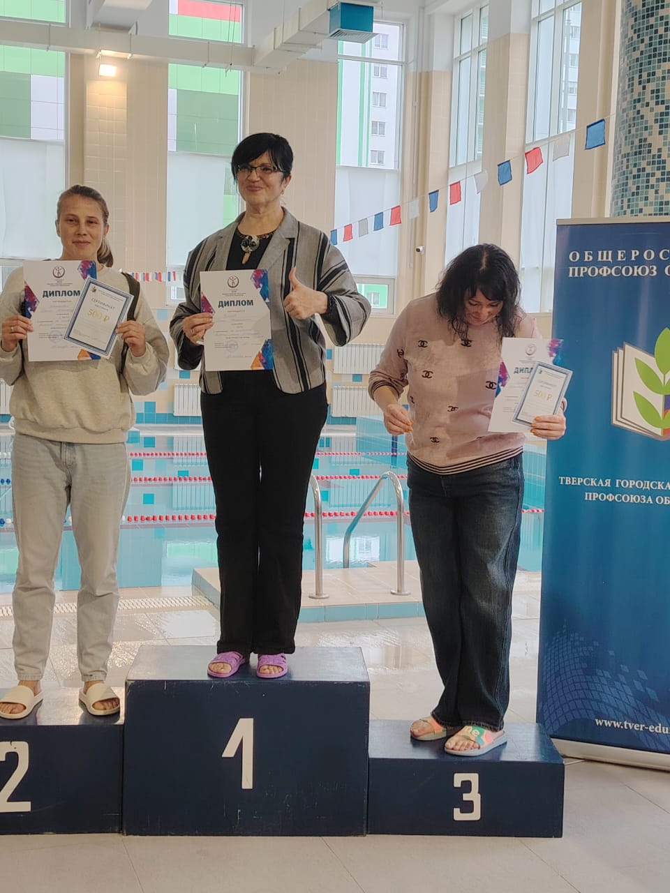 Председатель Тверской городской организации профсоюза образования Алла Николаевна Сидорова поблагодарила организаторов за проделанную работу, вручила памятный подарок. Каждой команде был вручен сертификат об участии в соревнованиях по плаванию.