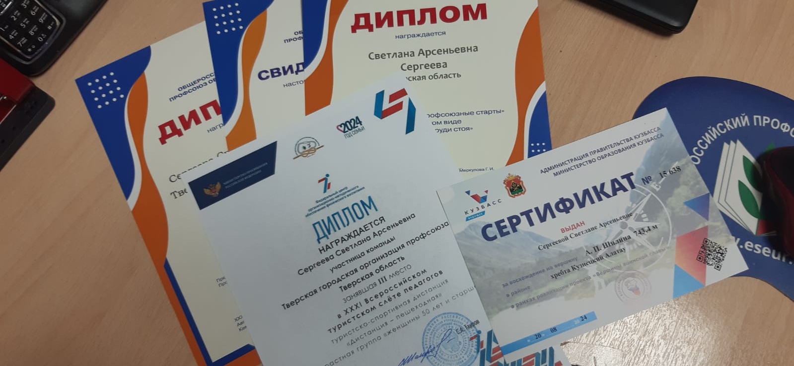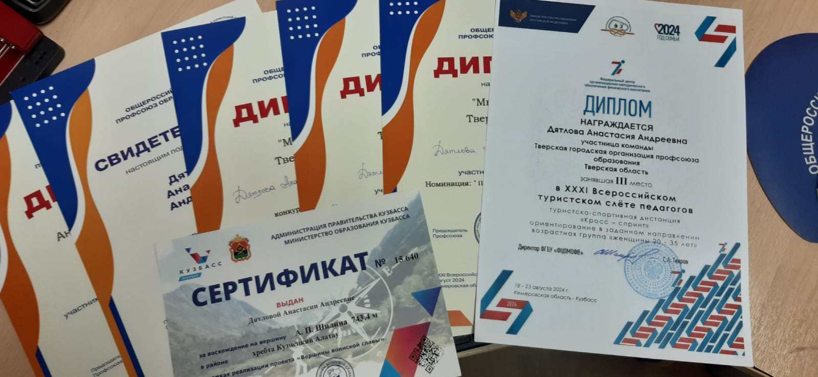 Кстати вылет самолета рейса Новокузнецк- Москва был задержан из-за погодных условий, наши туристы в пути с 01:00 часа, но всё равно подробно отчитались председателю организации Алле Николаевне Сидоровой об участии в XXXI Всероссийском туристском слёте педагогов!