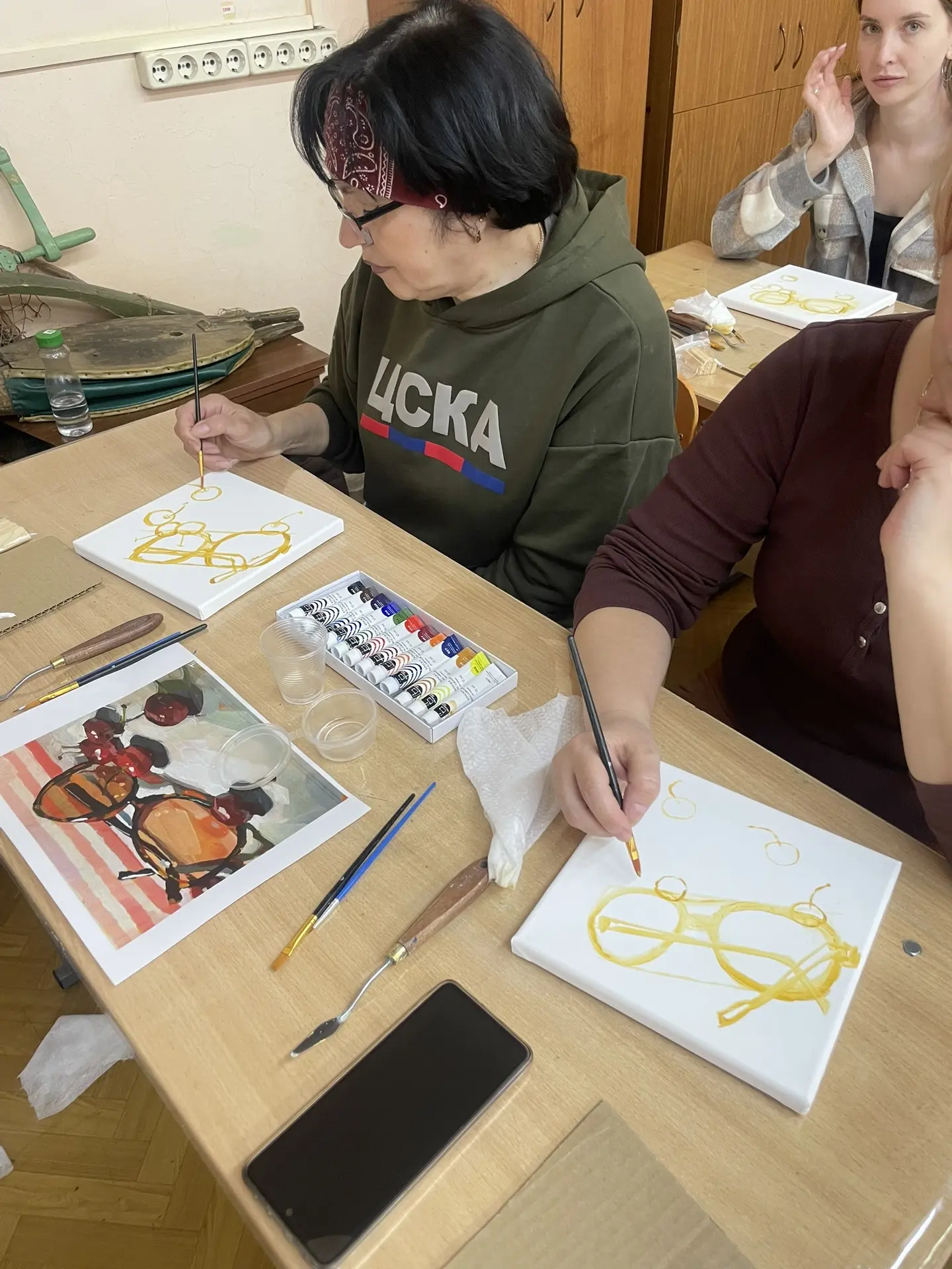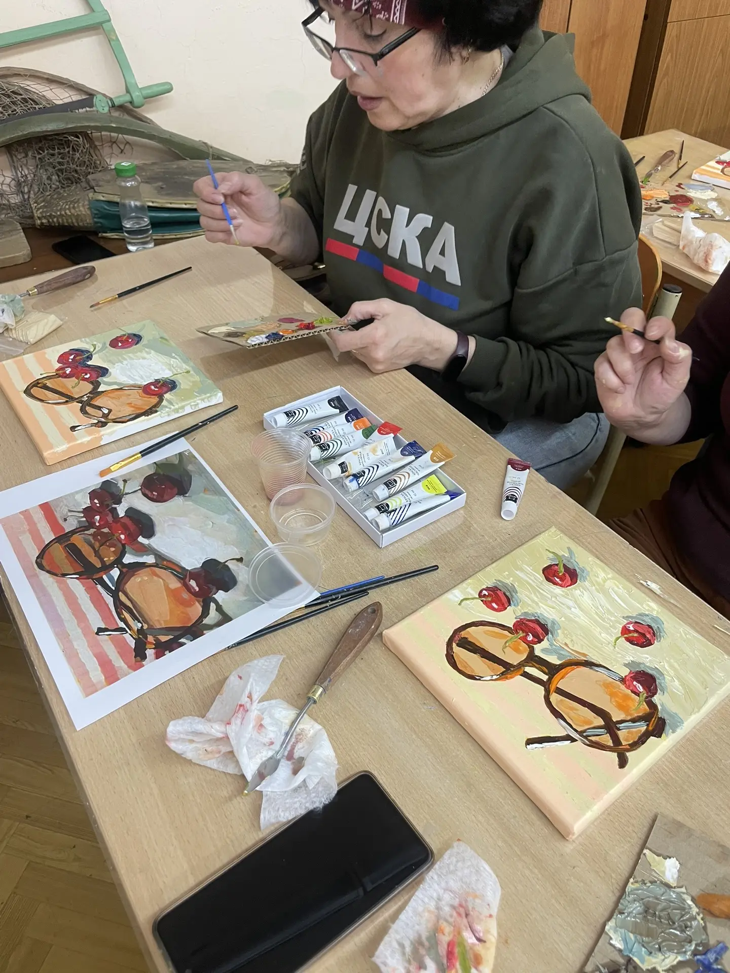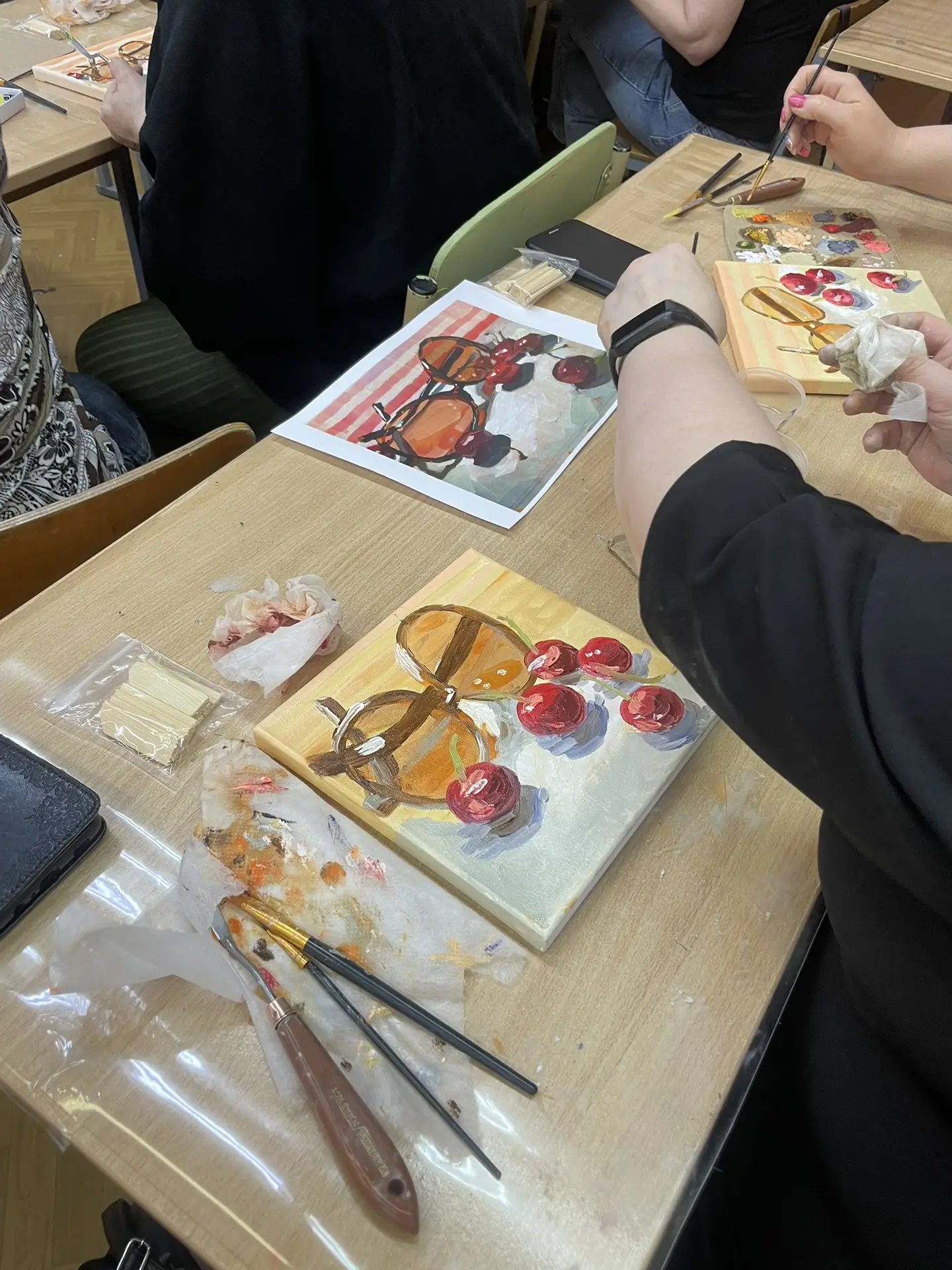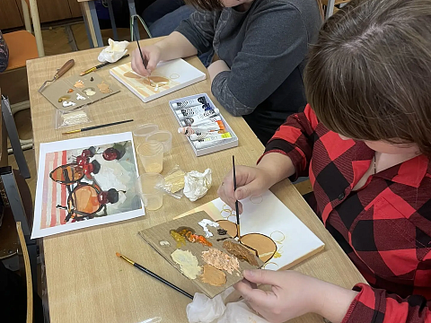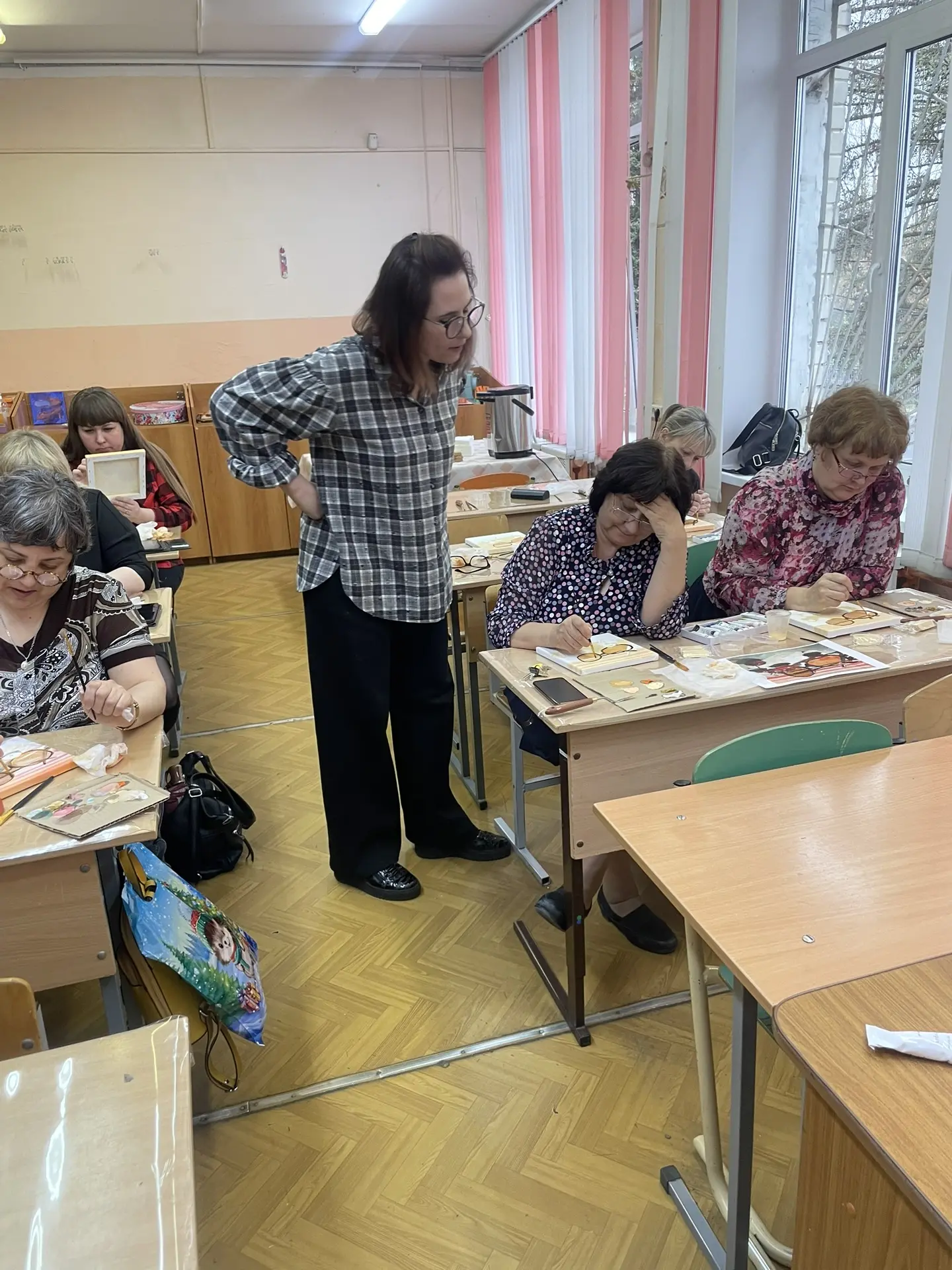 По многочисленным просьбам 15 апреля школа 38 вновь собрала членов профсоюза на гостевание "Женские радости". Тверская городская организация приготовила для встречи: холсты, масляные краски, кисти, короче, всё необходимое, входят участники. Кто-то из участников знаком с коллегами из других образовательных учреждений, а кто-то пришёл впервые, но атмосфера комфортная и доброжелательная.