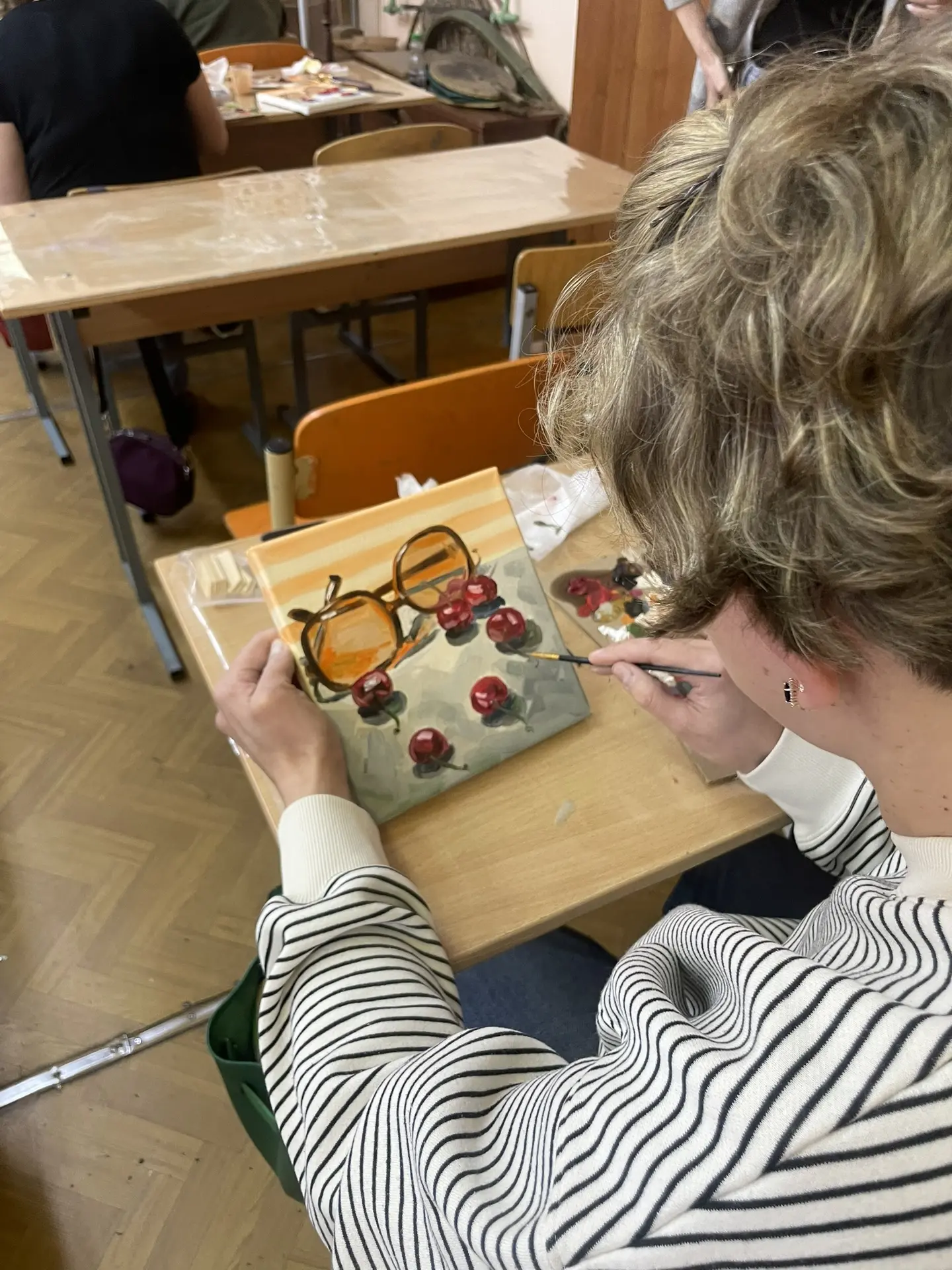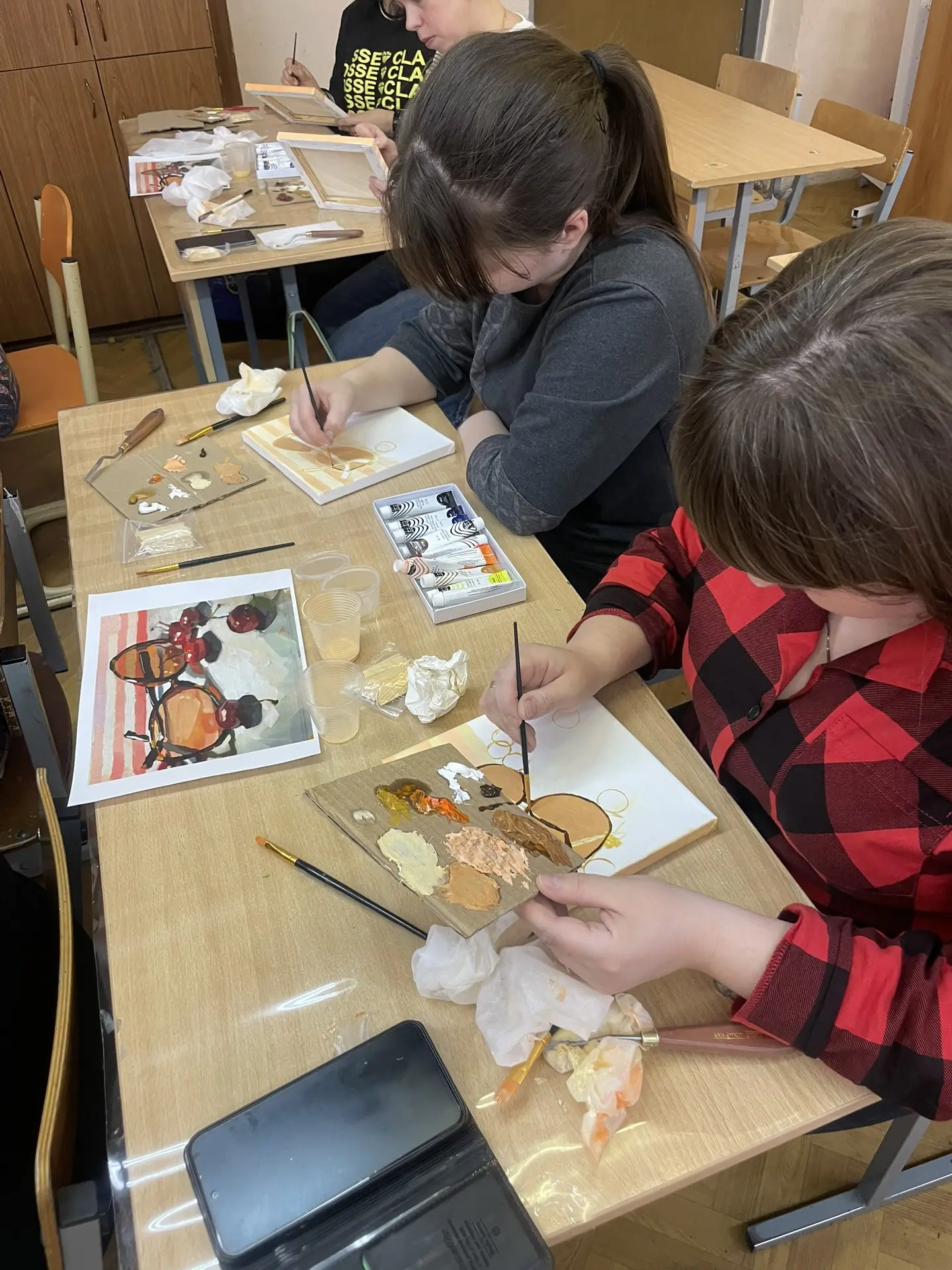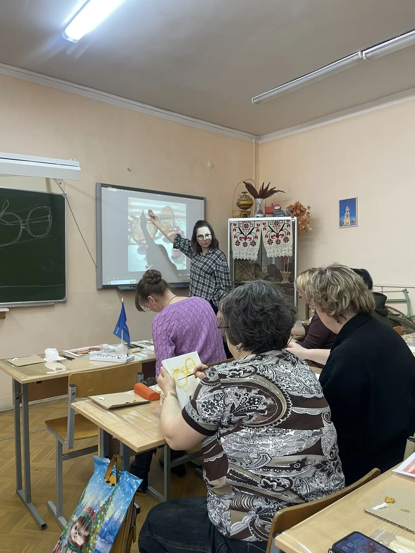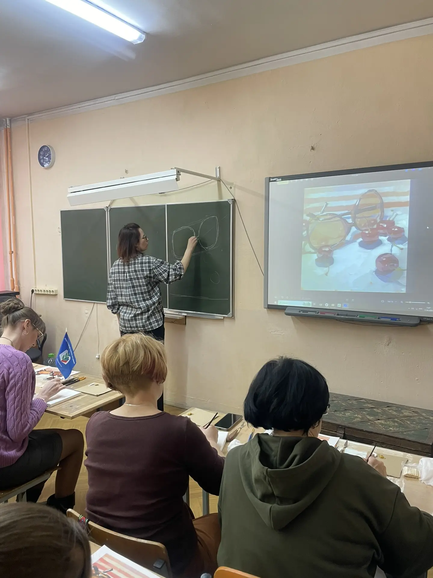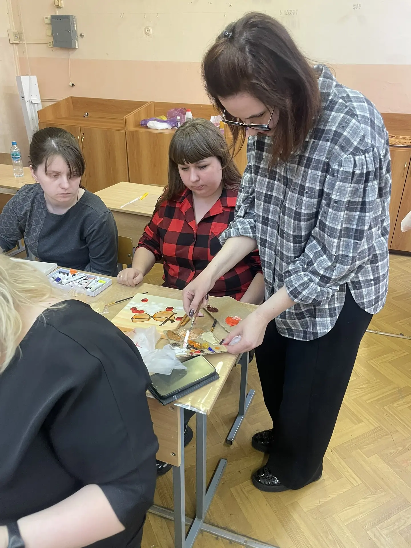 По многочисленным просьбам 15 апреля школа 38 вновь собрала членов профсоюза на гостевание "Женские радости". Тверская городская организация приготовила для встречи: холсты, масляные краски, кисти, короче, всё необходимое, входят участники. Кто-то из участников знаком с коллегами из других образовательных учреждений, а кто-то пришёл впервые, но атмосфера комфортная и доброжелательная.