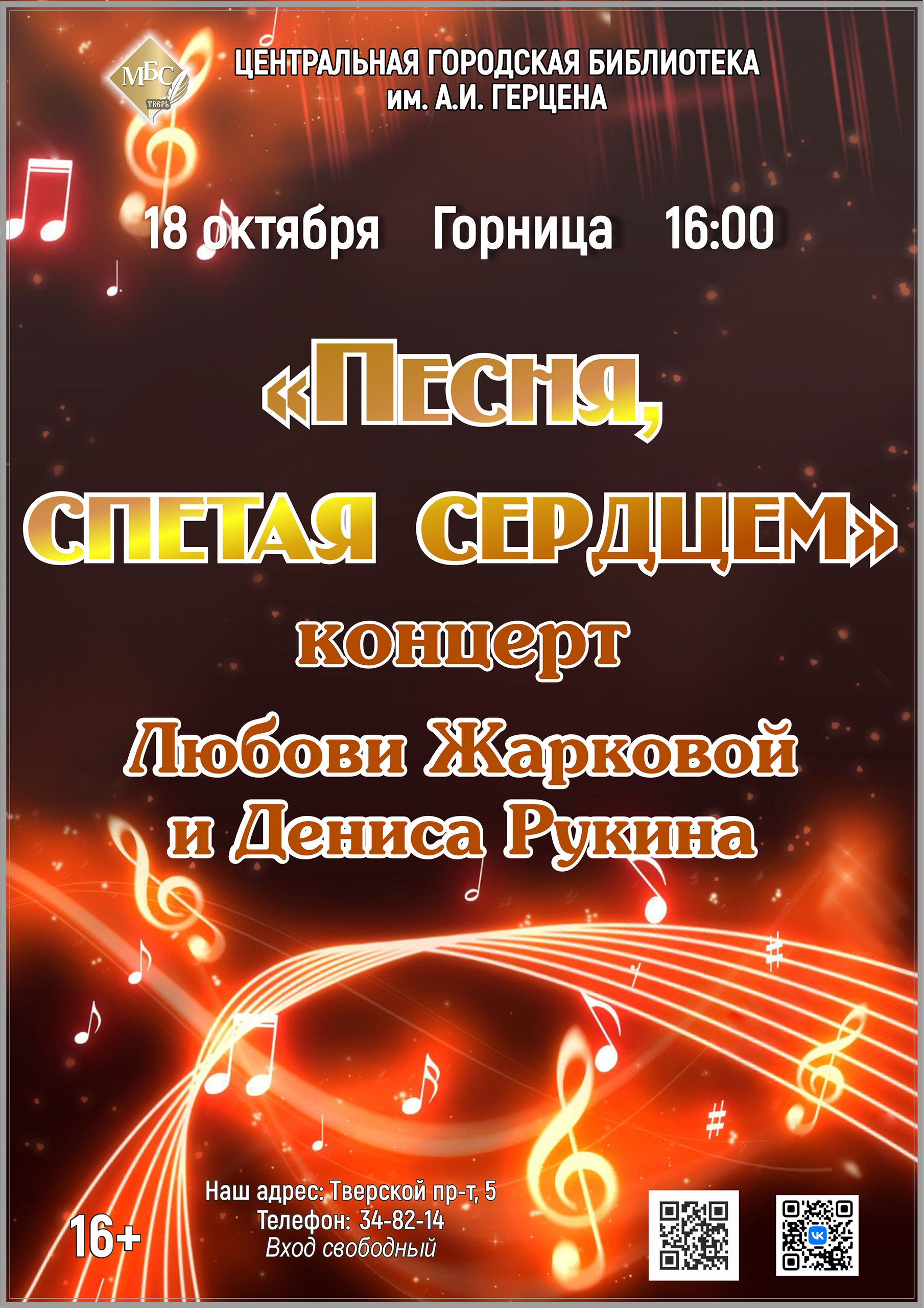 18 октября Центральная городская библиотека им. А.И. Герцена приглашает в уютную Горницу на концерт «Песня, спетая сердцем».