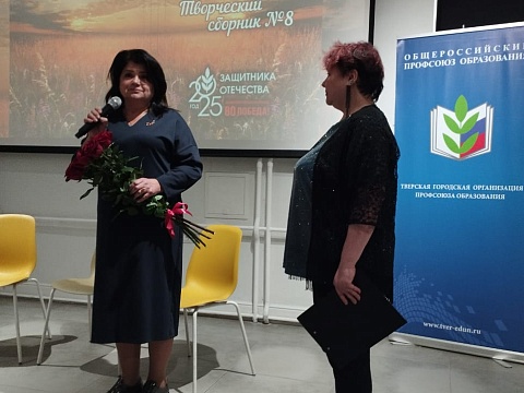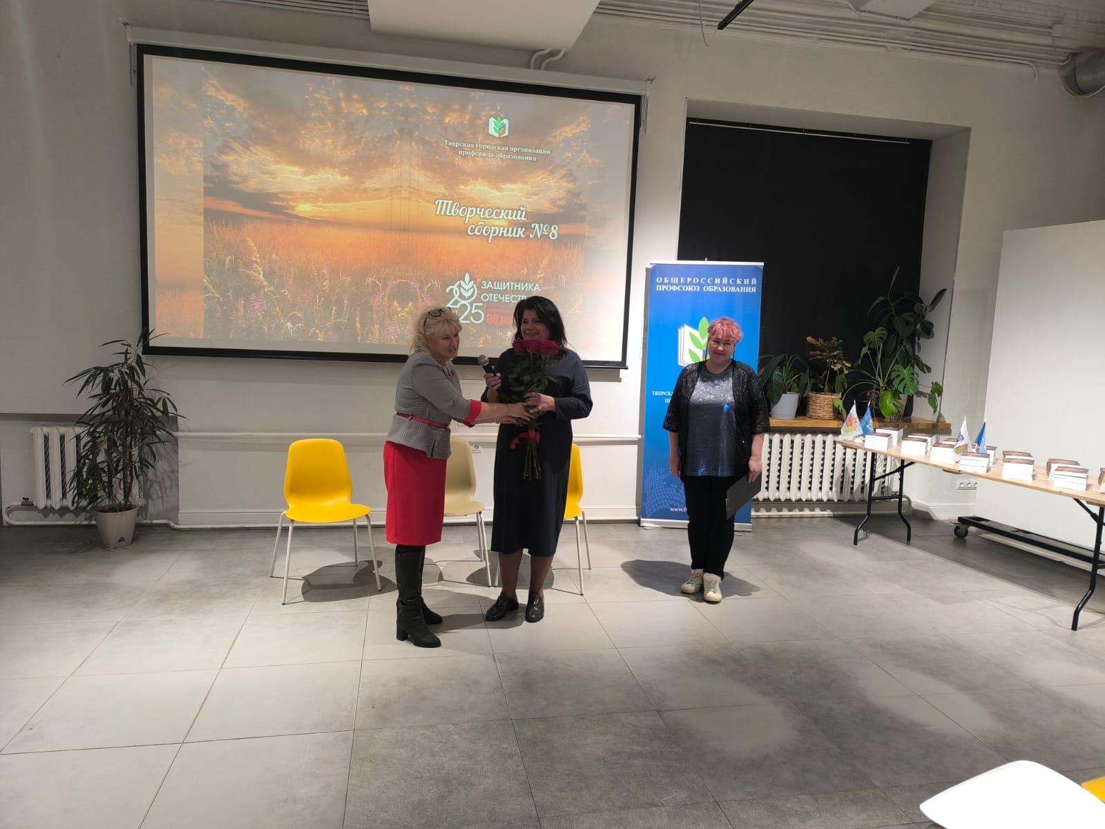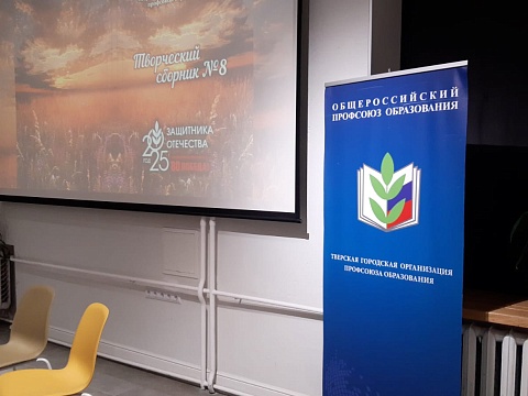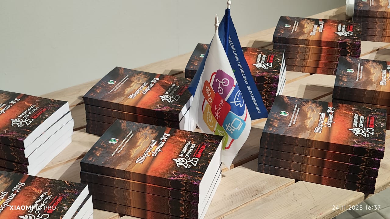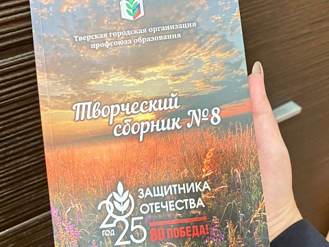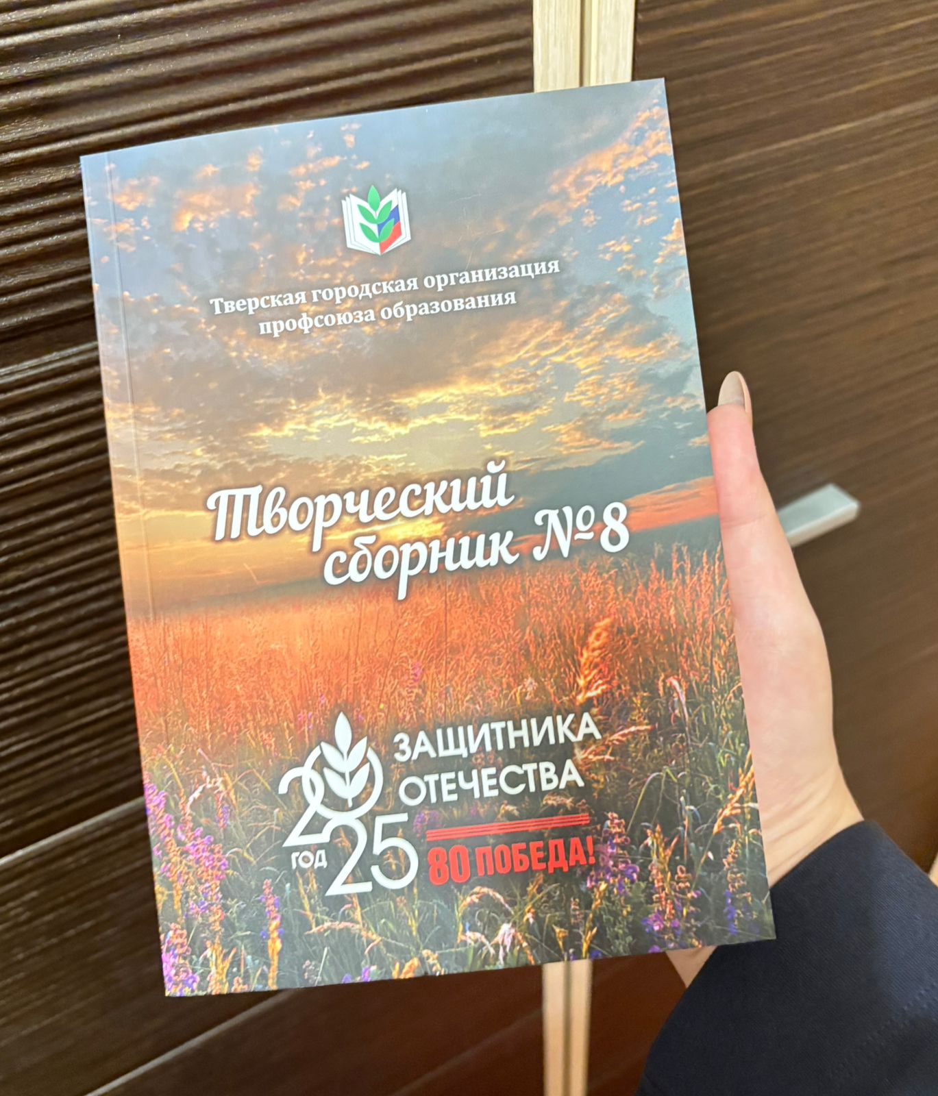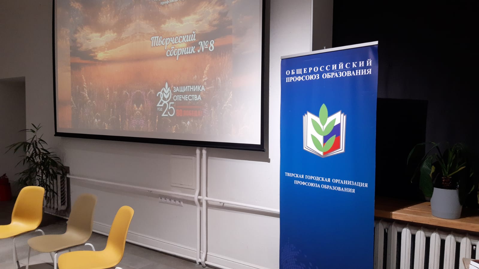 Просторный зал, высокие потолки, стулья полукругом, а на столах сбоку — стопки книг. Яркие переплёты манят взгляды собравшихся. На экране заставка: презентация восьмого творческого сборника Тверской городской организации профсоюза образования. Мягкий свет дружелюбно освещает пространство, на лицах людей удивление, сомнение, но и азарт: что будет? Что дальше?