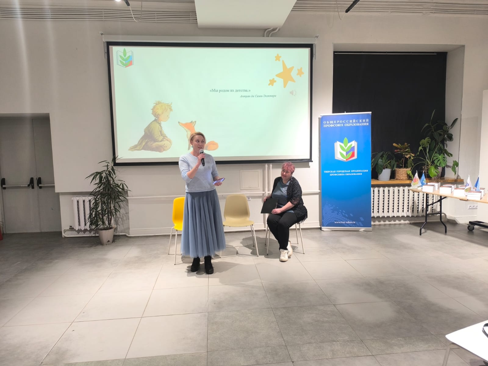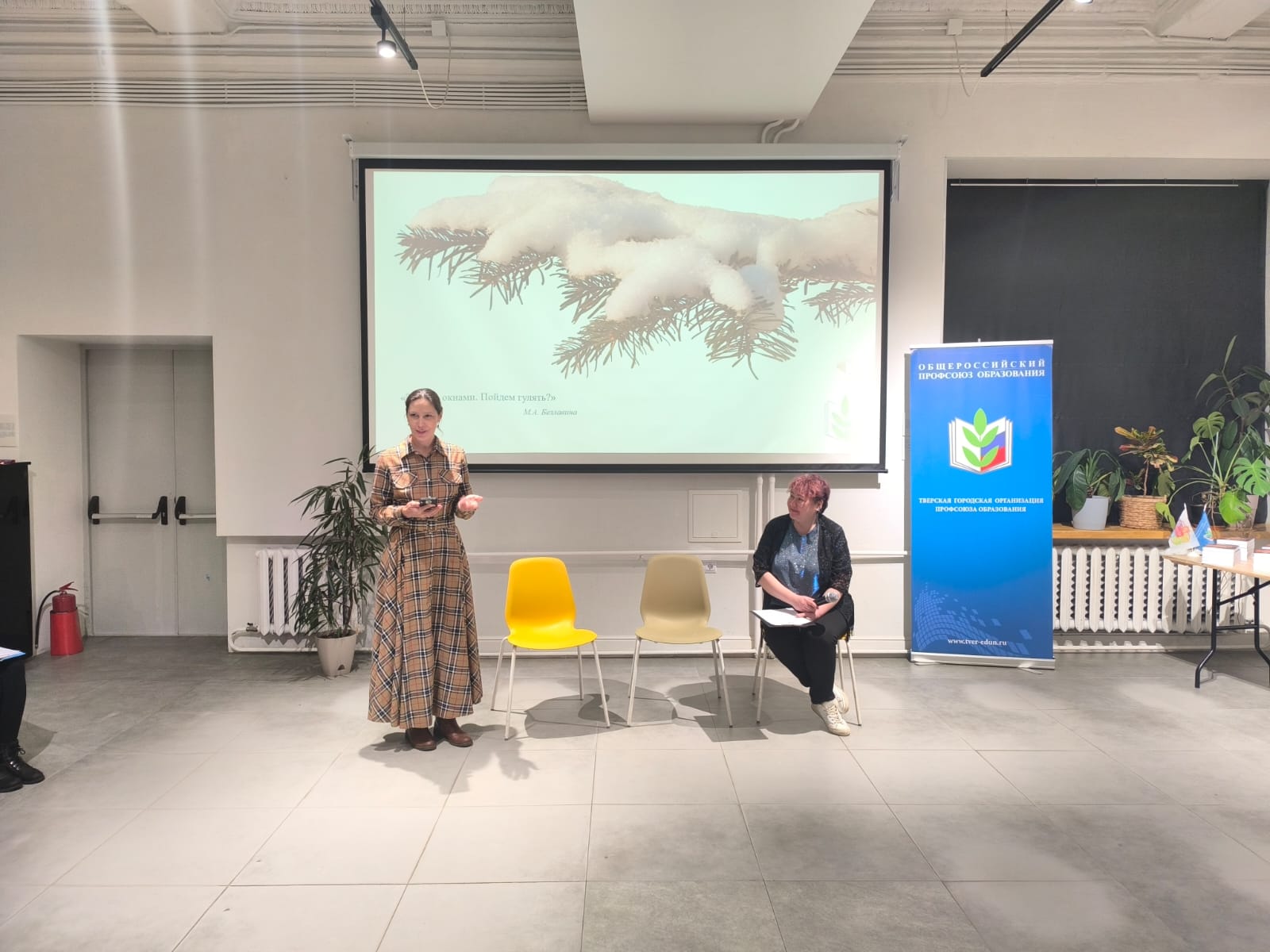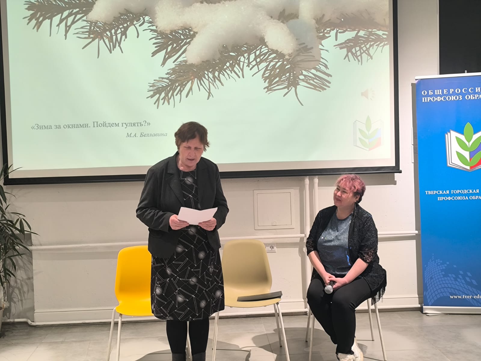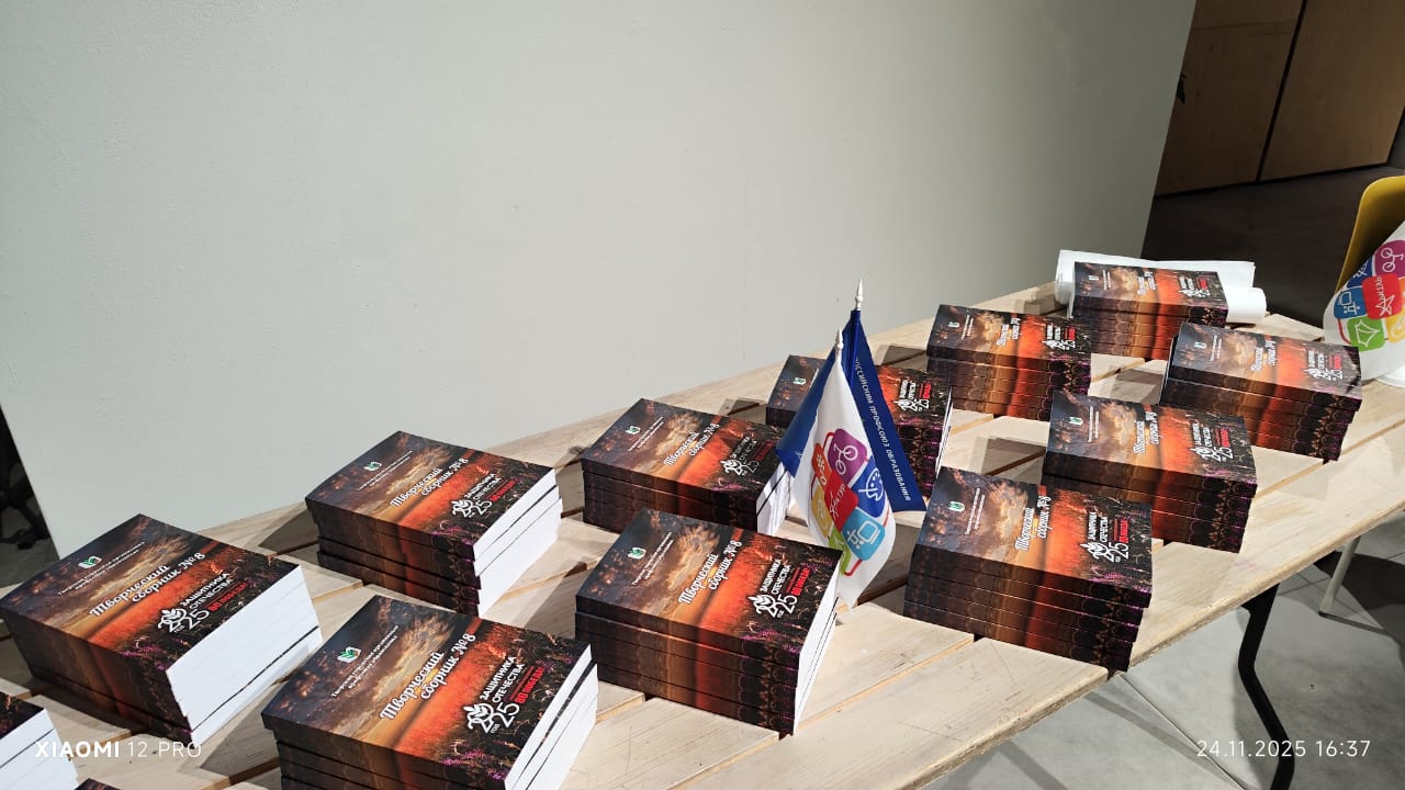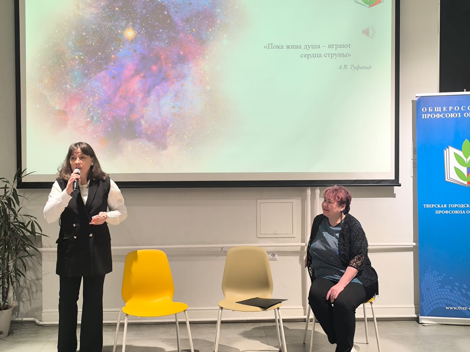 Просторный зал, высокие потолки, стулья полукругом, а на столах сбоку — стопки книг. Яркие переплёты манят взгляды собравшихся. На экране заставка: презентация восьмого творческого сборника Тверской городской организации профсоюза образования. Мягкий свет дружелюбно освещает пространство, на лицах людей удивление, сомнение, но и азарт: что будет? Что дальше?