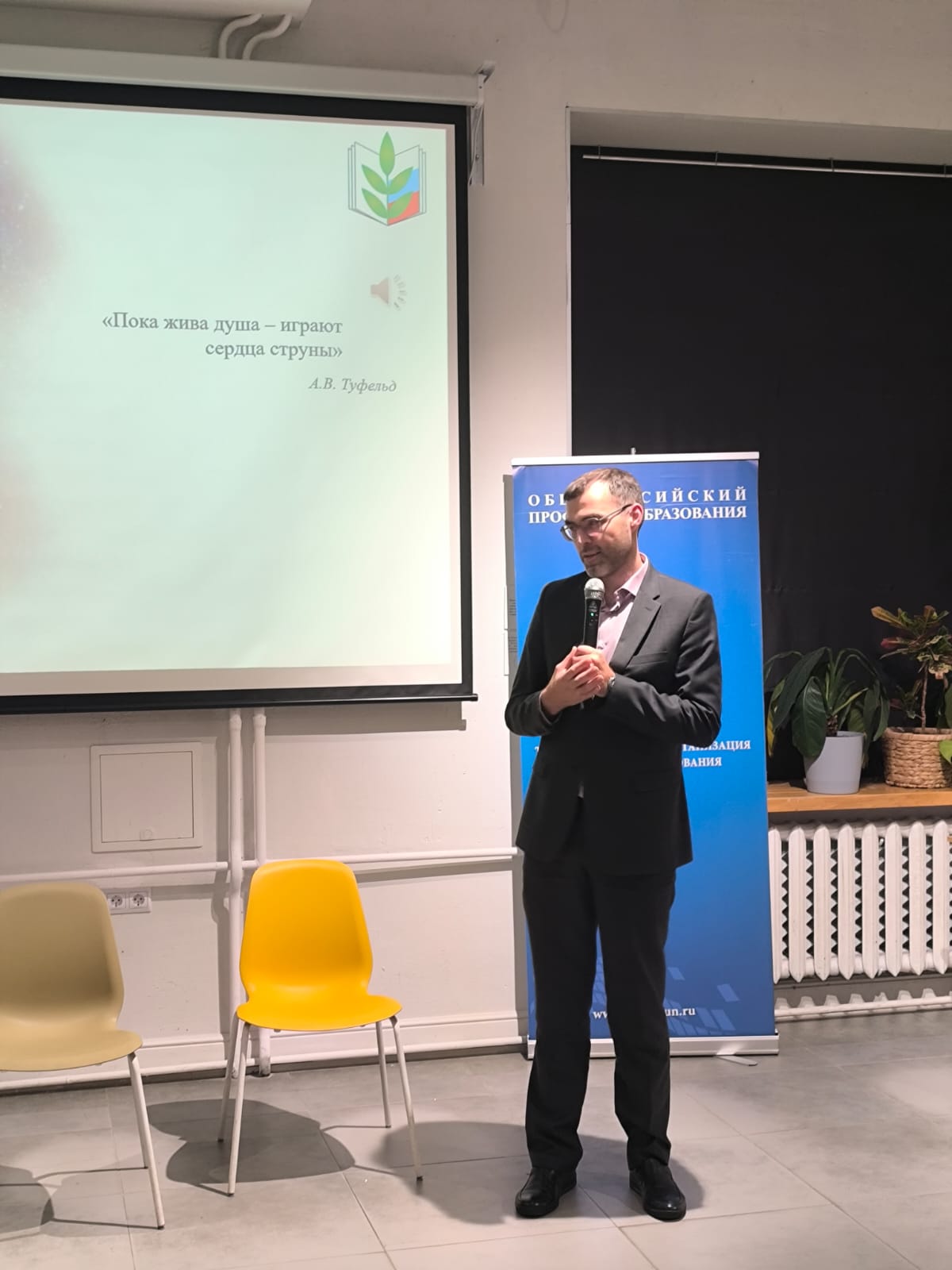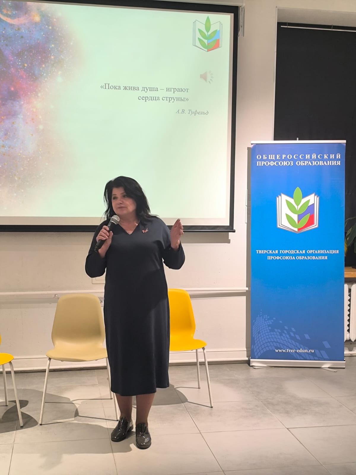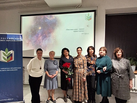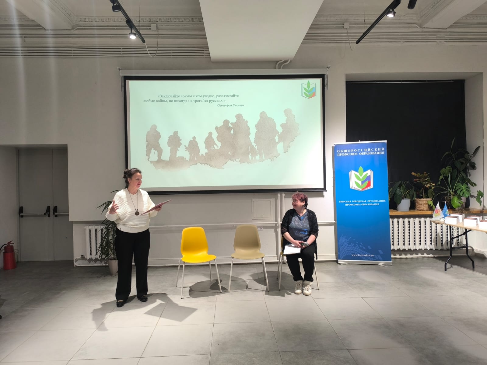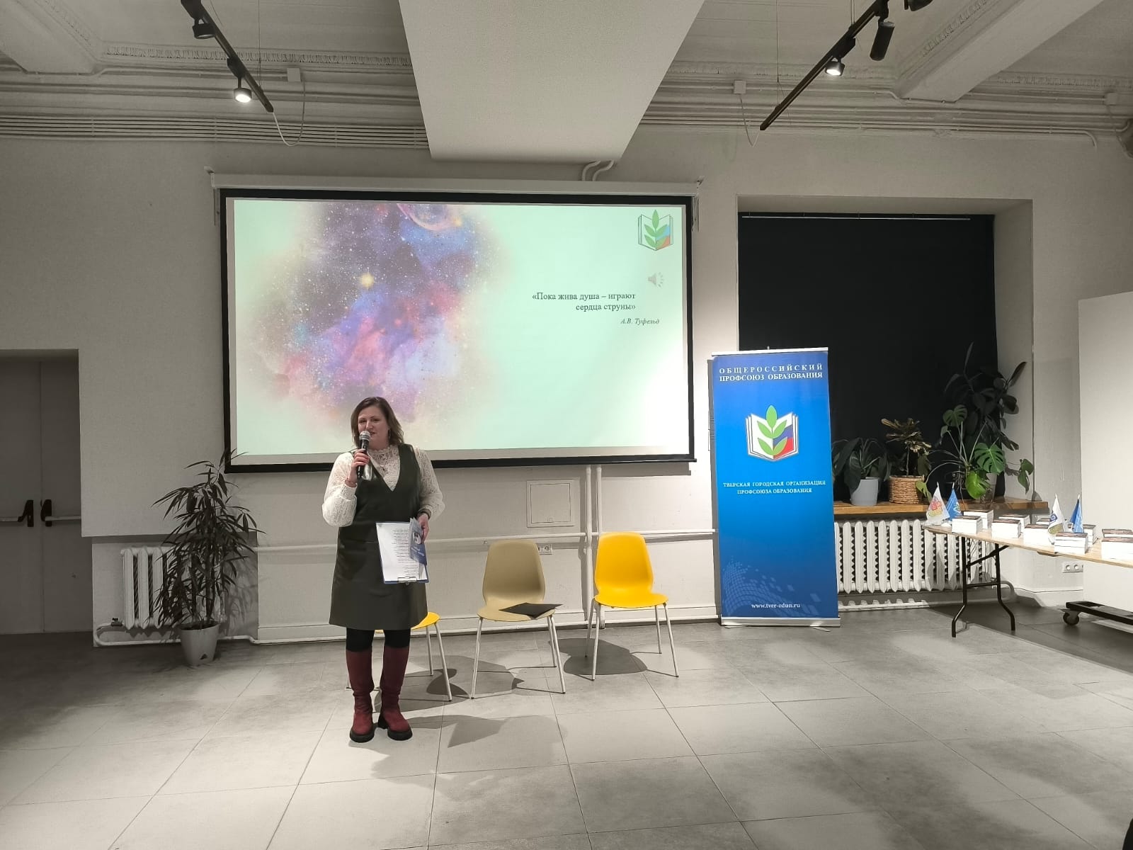 Просторный зал, высокие потолки, стулья полукругом, а на столах сбоку — стопки книг. Яркие переплёты манят взгляды собравшихся. На экране заставка: презентация восьмого творческого сборника Тверской городской организации профсоюза образования. Мягкий свет дружелюбно освещает пространство, на лицах людей удивление, сомнение, но и азарт: что будет? Что дальше?