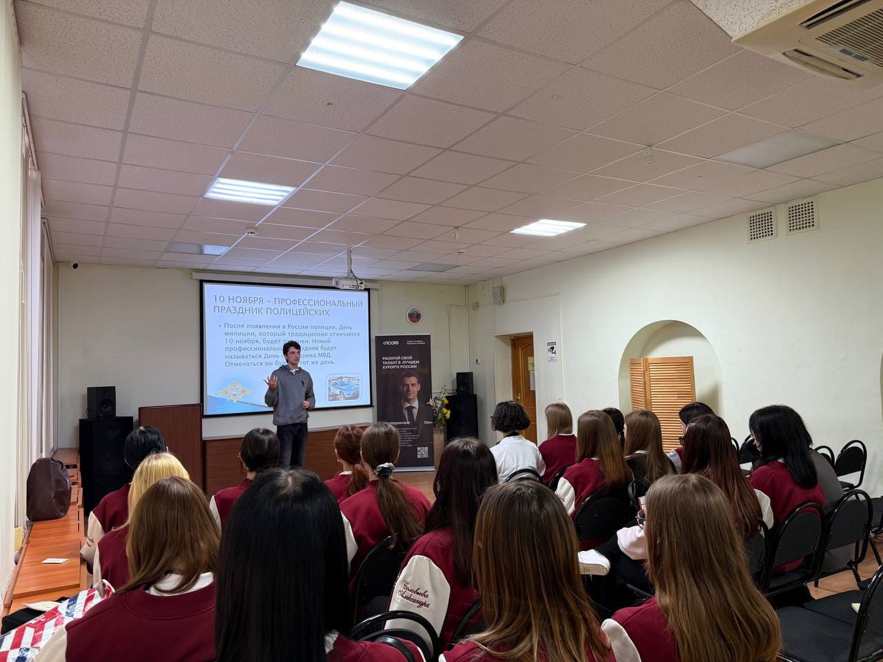 Ежегодно 3 декабря в России отмечается профессиональный праздник всех юристов, независимо от сферы их профессиональной деятельности — День юриста, установленный Указом Президента Российской Федерации от 4 февраля 2008 года № 130 «Об установлении Дня юриста». Исторически профессия юриста в России является престижной, и в то же время связана с огромной ответственностью. Советник директора по воспитанию, член профсоюза Кушникова К.А. совместно с преподавателем обществознания Осадчим А.В. организовали лекторий «День юриста в России». Благодаря данной встрече студенты учатся обосновывать важность правовых знаний в современном обществе, осознают свои конституционные права и обязанности, уважают закон и правопорядок.