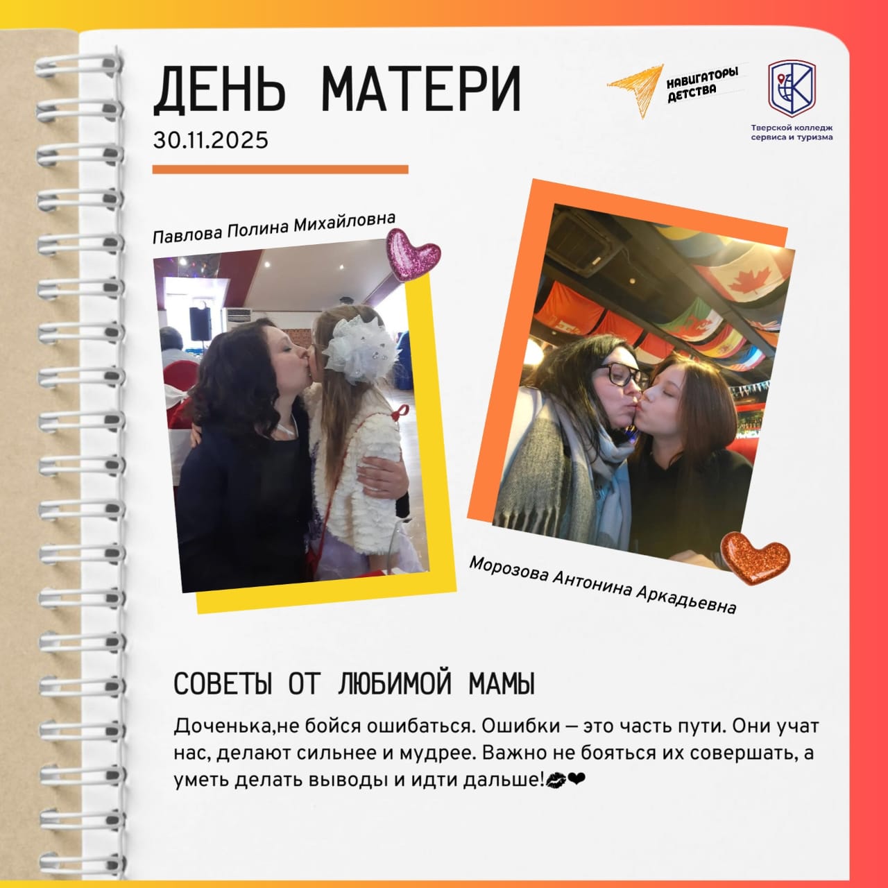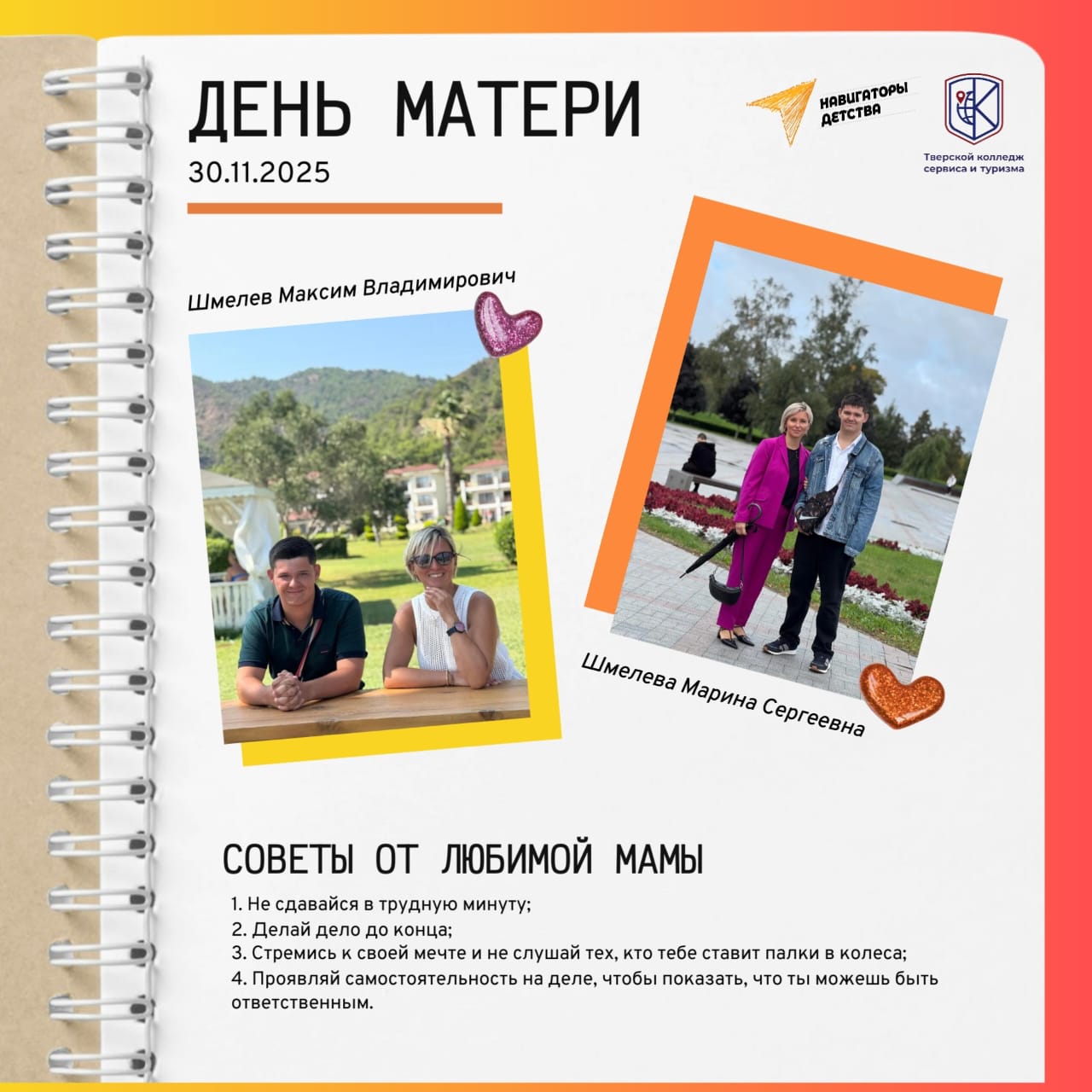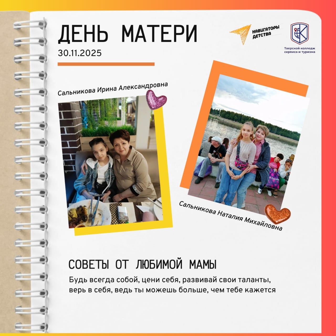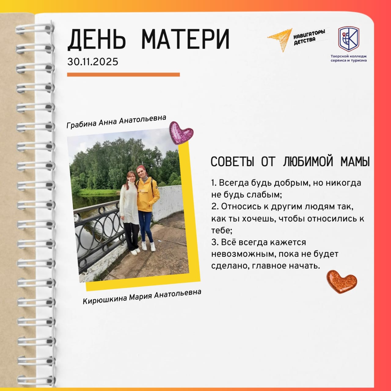 Превосходный пример такого подхода — победа наших студенток Марии Вороновой и Дисаны Макаевой (1 курс, «Туризм и гостеприимство») во Всероссийском конкурсе «Дорога памяти» Дорога Памяти. Сохранение исторической памяти . Руководитель — Лилия Николаевна Бесолова, член профсоюза.