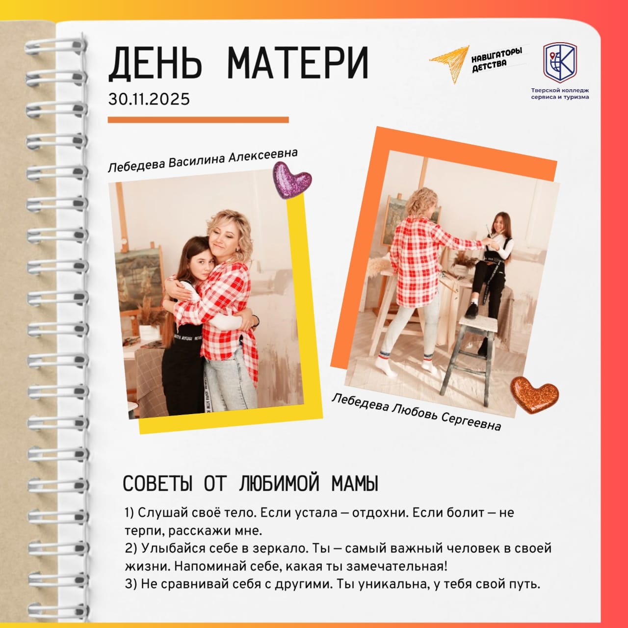 Под руководством советника директора по воспитанию, члена профсоюза Кушниковой К.А студенты учебных групп принимают участие в региональной Акции «Совет, который всегда со мной». В рамках данной акции студенты вспомнили и поделились наиболее значимыми и памятными советами своих мам.