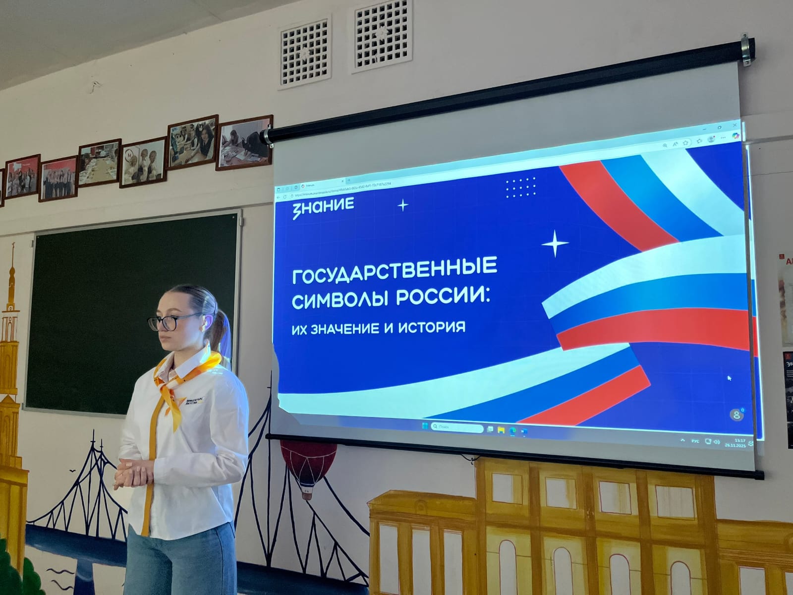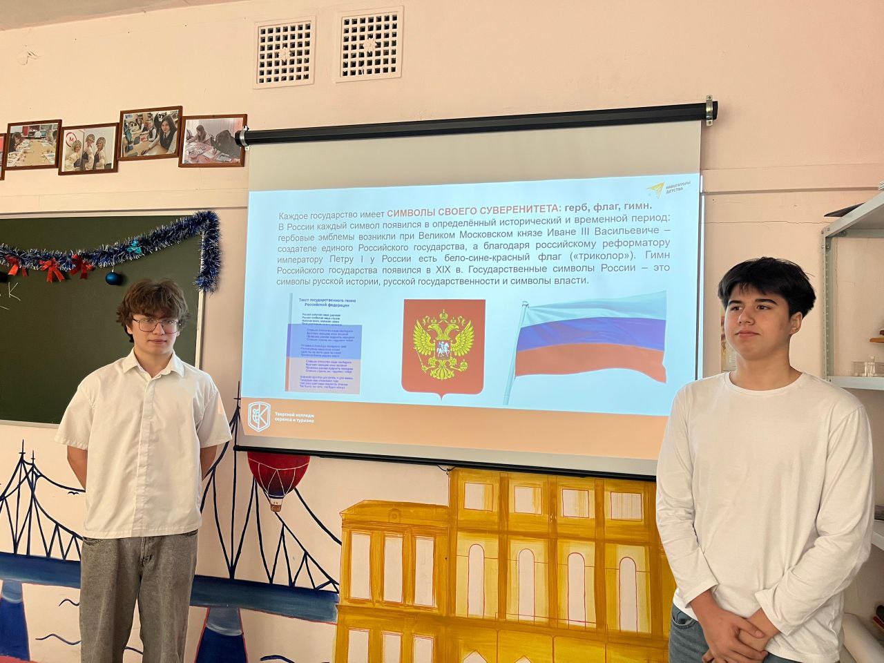 Советник директора по воспитанию, член профсоюза Кушникова К.А провела лекцию «Государственные символы России: их значение и история». Студенты первокурсники в формате классного часа узнали историю герба, флага и гимна Российской федерации, а так же приняли участие в викторине.