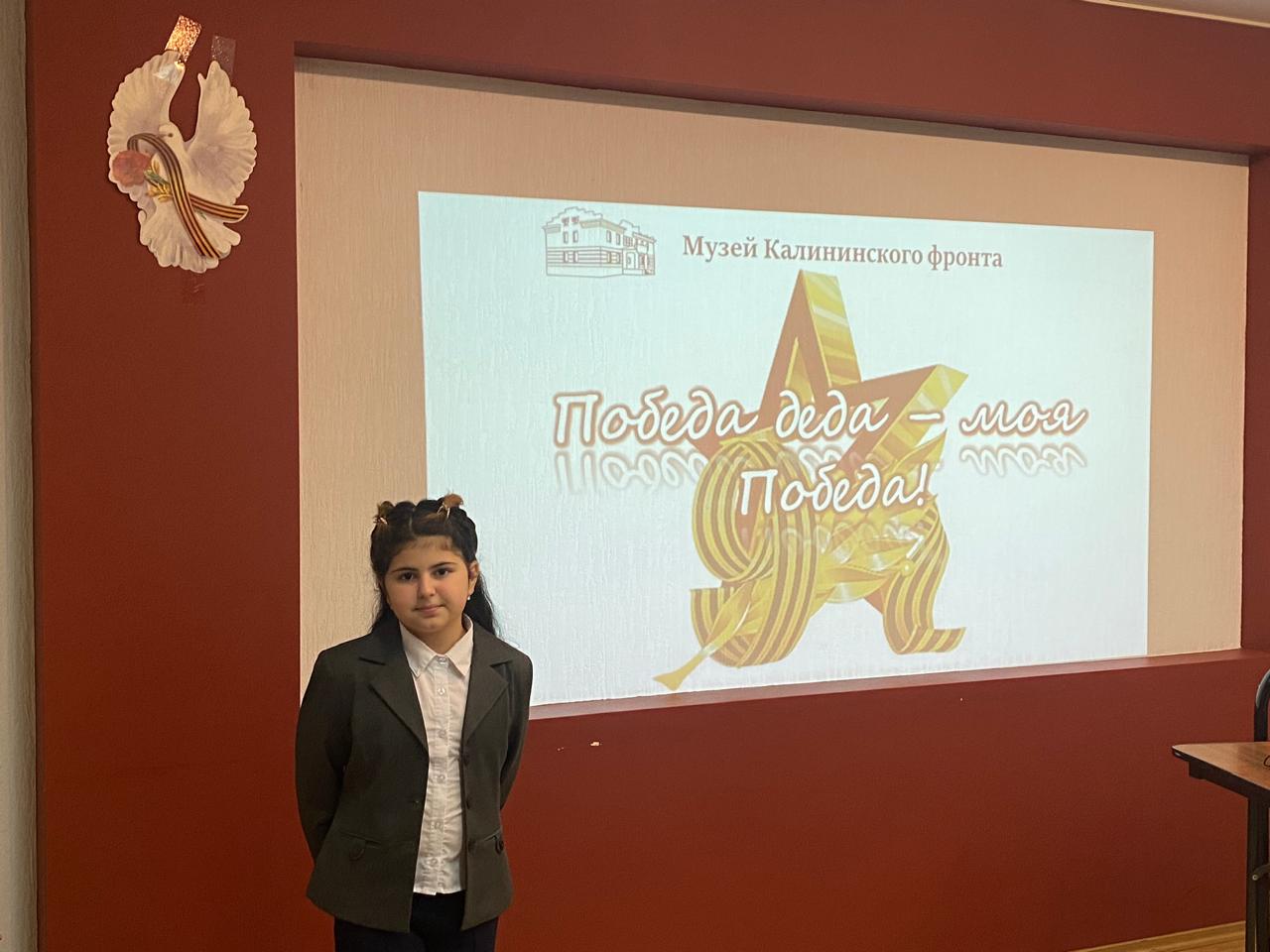 Сегодня, 16 октября, на базе Музея Калининского фронта прошла 3-я конференция «Победа деда - моя Победа». Ученица 3 класса Енгоян Милена выступила с работой на тему «Великая Отечественная война в названии улиц нашего города» (руководитель школьного музея председатель ППО Ершова Л.А.)