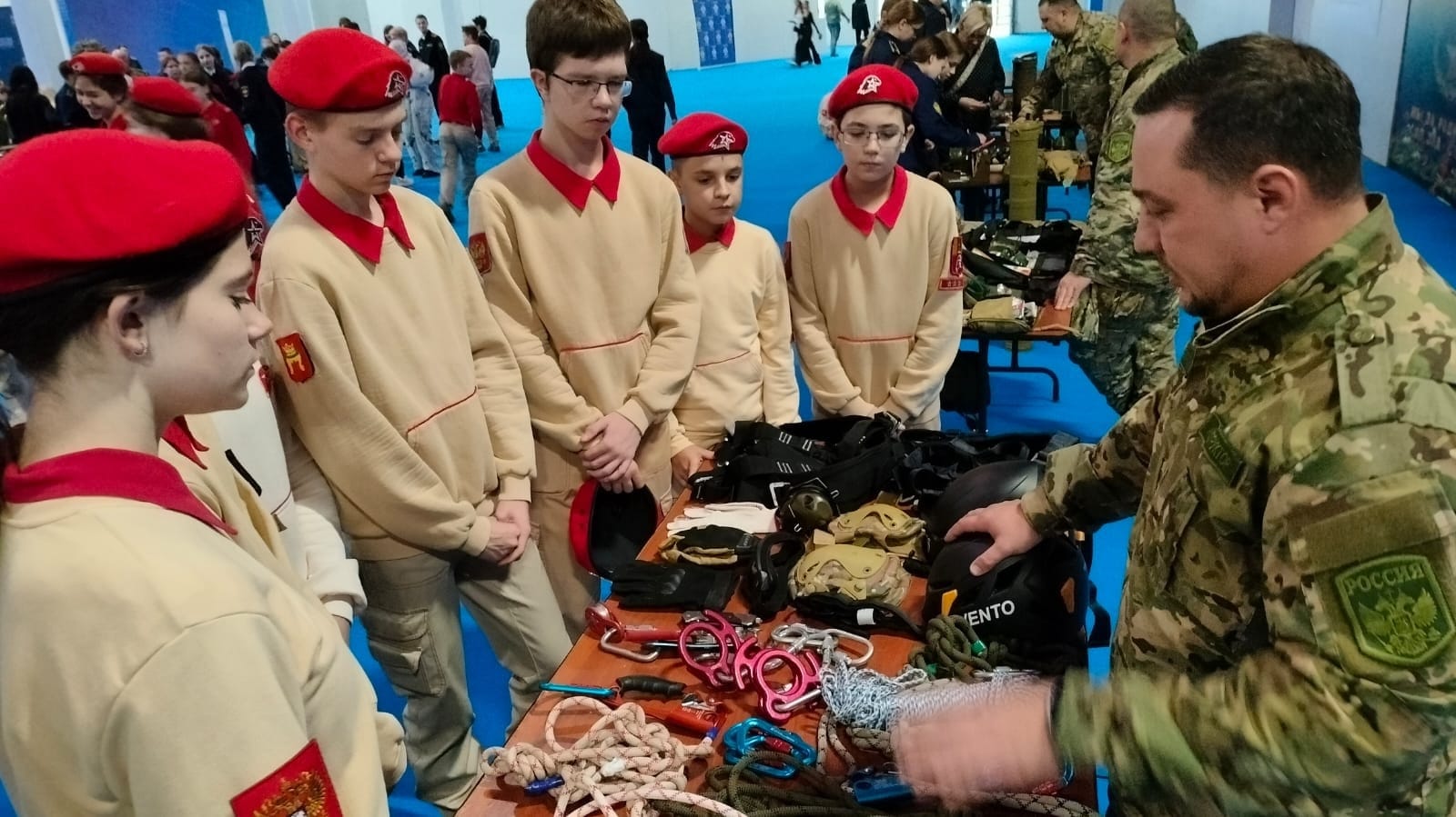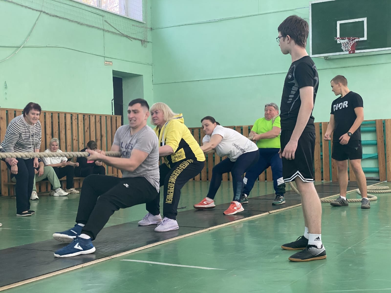 После экскурсии по школьному музею, которую провела Елена Анатольевна Громова, все собрались в зале, где начался мастер-класс по технике перетягивания каната.